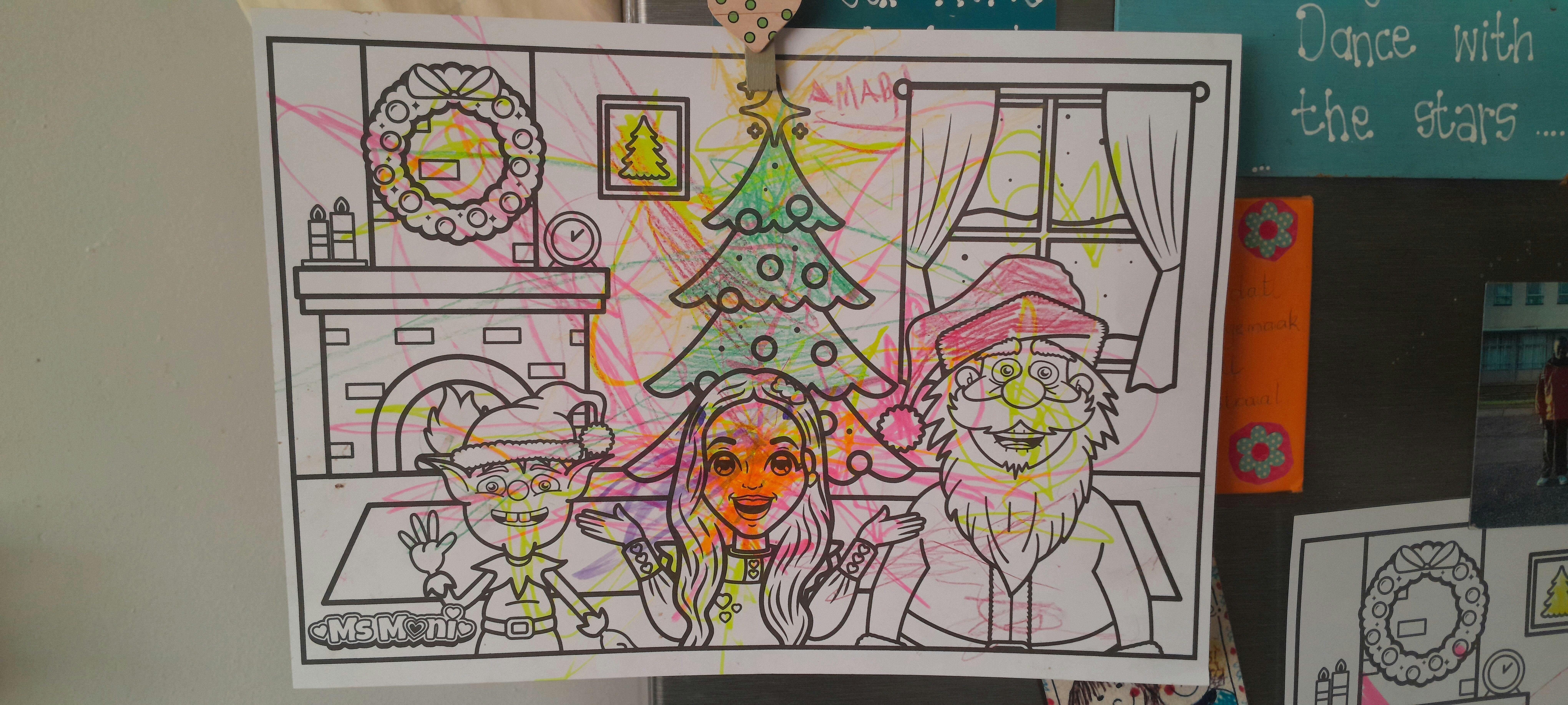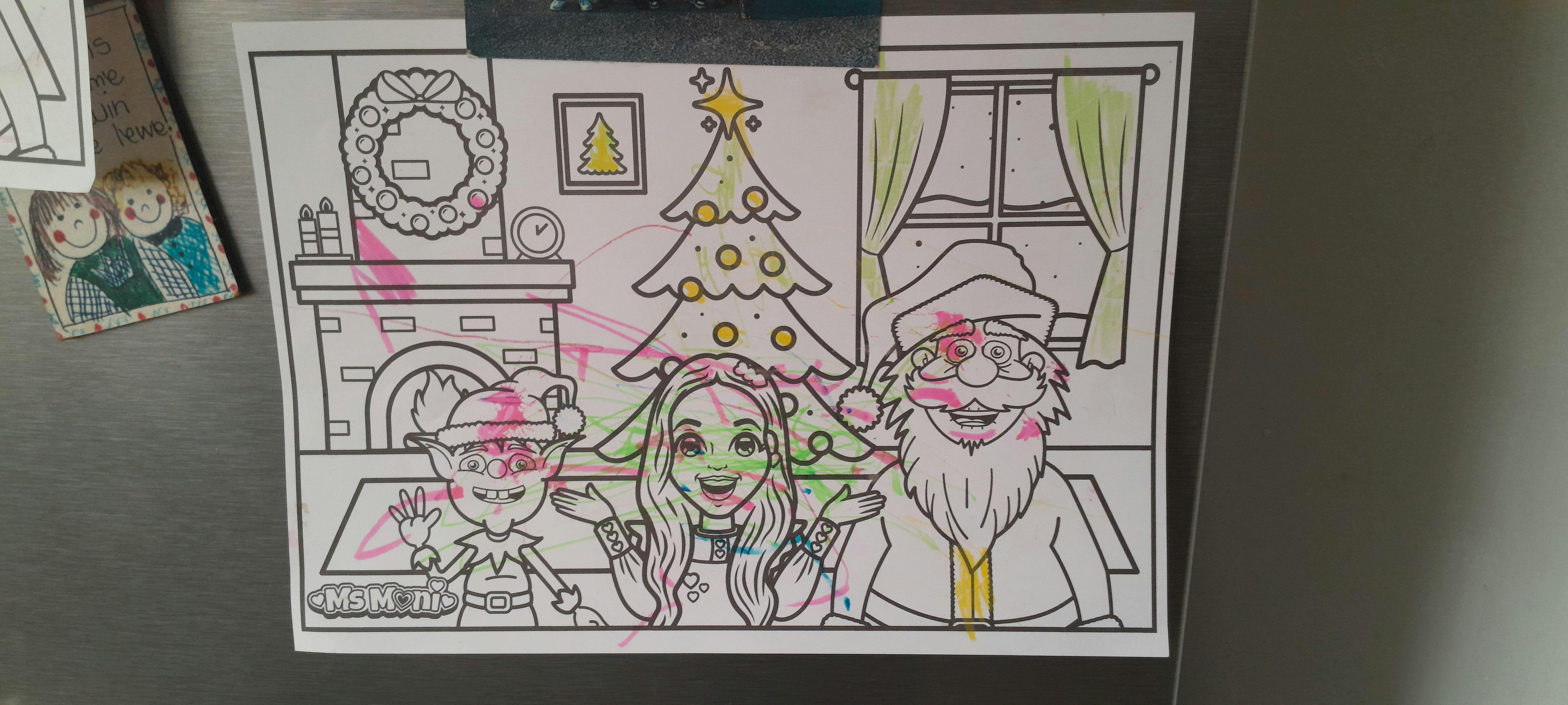 Get festive with this Christmas Colouring Sheet from Ms Moni's Christmas episode. Download as a PDF for easy printing and colouring. Perfect for kids (or adults) to add some holiday cheer to their day!
